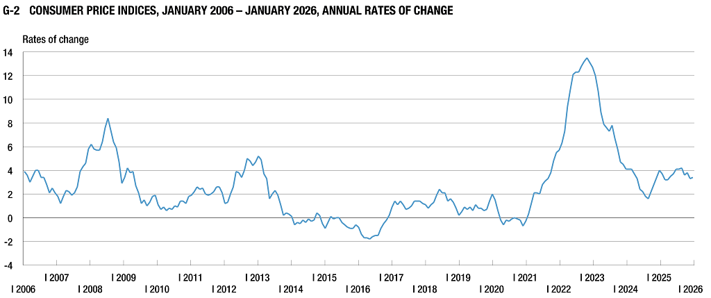 In January 2026 compared to January 2025 (at the annual level), the prices of goods and services for personal consumption, measured by the consumer price index, increased by 3.4% on average, while, compared to December 2025 (at the monthly level), they increased by 0.3% on average.